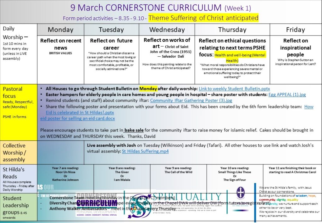 The Cornerstone Bulletin is a weekly curriculum for form tutors to deliver including daily reflection, pastoral support, assemblies and our St Hilda’s Reads programme. Please see the latest bulletin below.